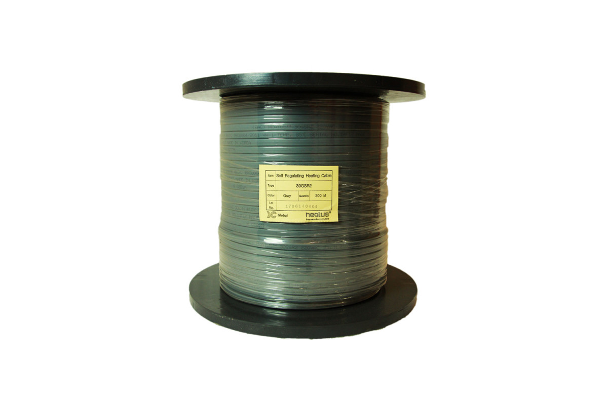 Греющий кабель Heatus 30GSR2 мощностью 30 Вт/м, неэкранированный. Полупроводниковая саморегулирующаяся матрица покрыта никелем, ее размер: 8 х 2,1 мм. Размер первой изоляции из огнестойкого полиолефина: 10 x 3,6. Сечение токоведущей жилы 1,11 кв. мм.