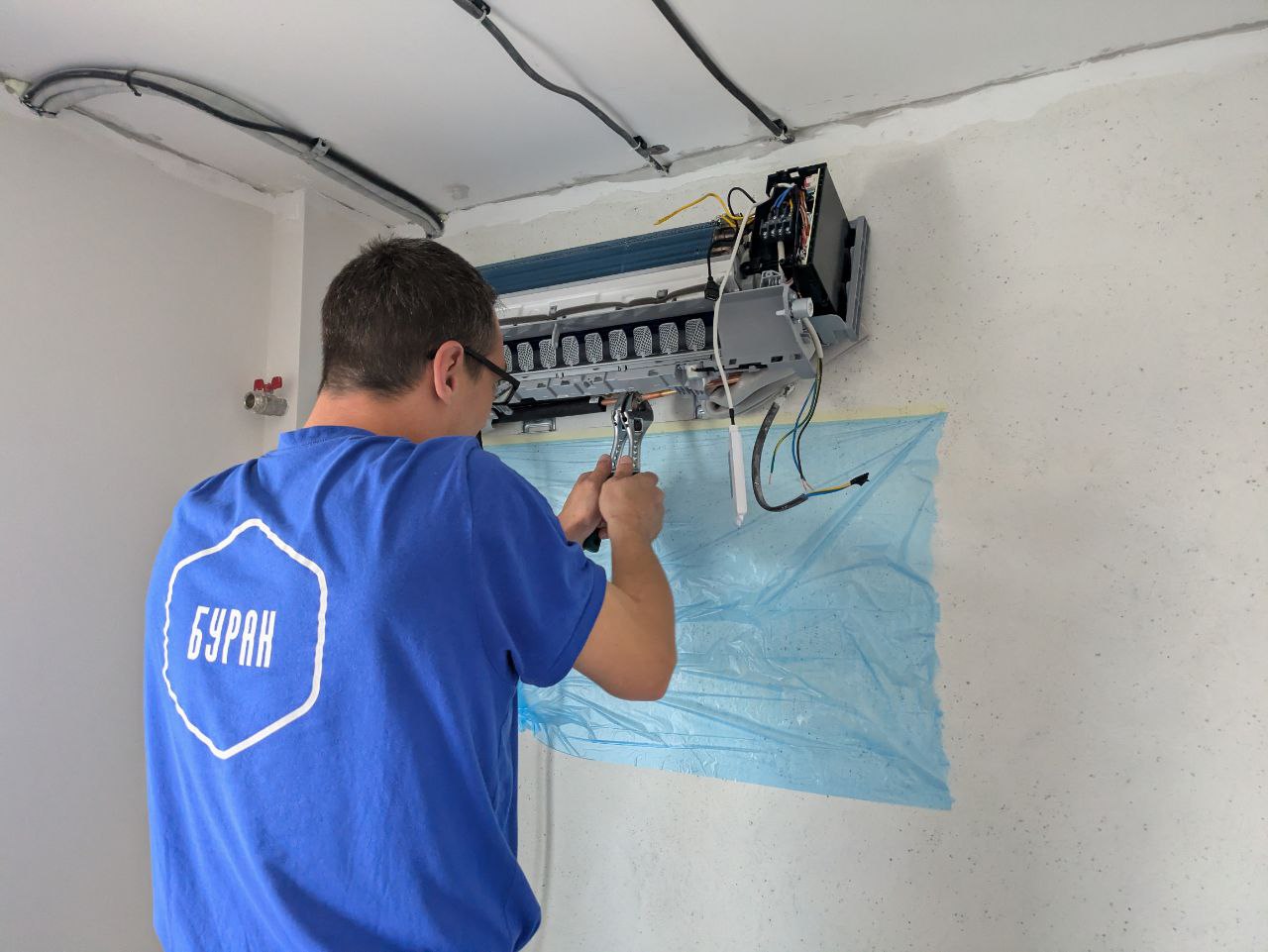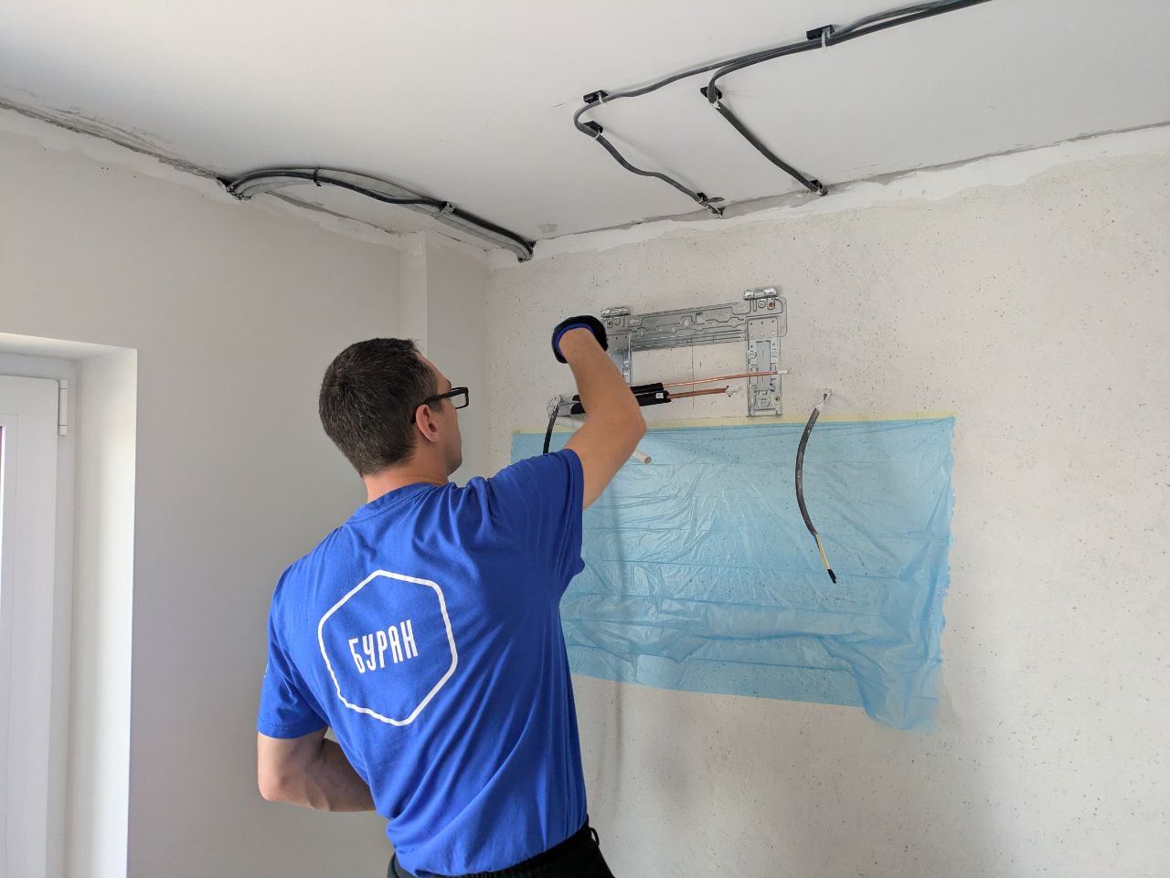 Компания «Буран Климат» взяла на себя полный цикл работ: от замера помещения до прокладки коммуникаций под будущую сплит-систему.